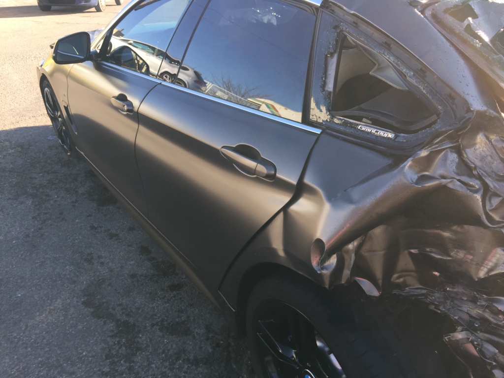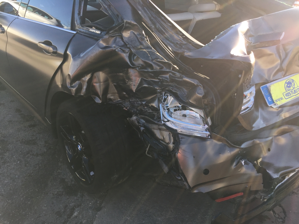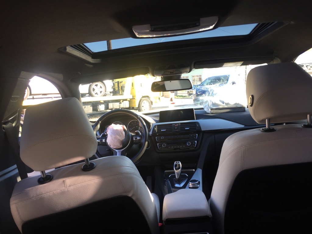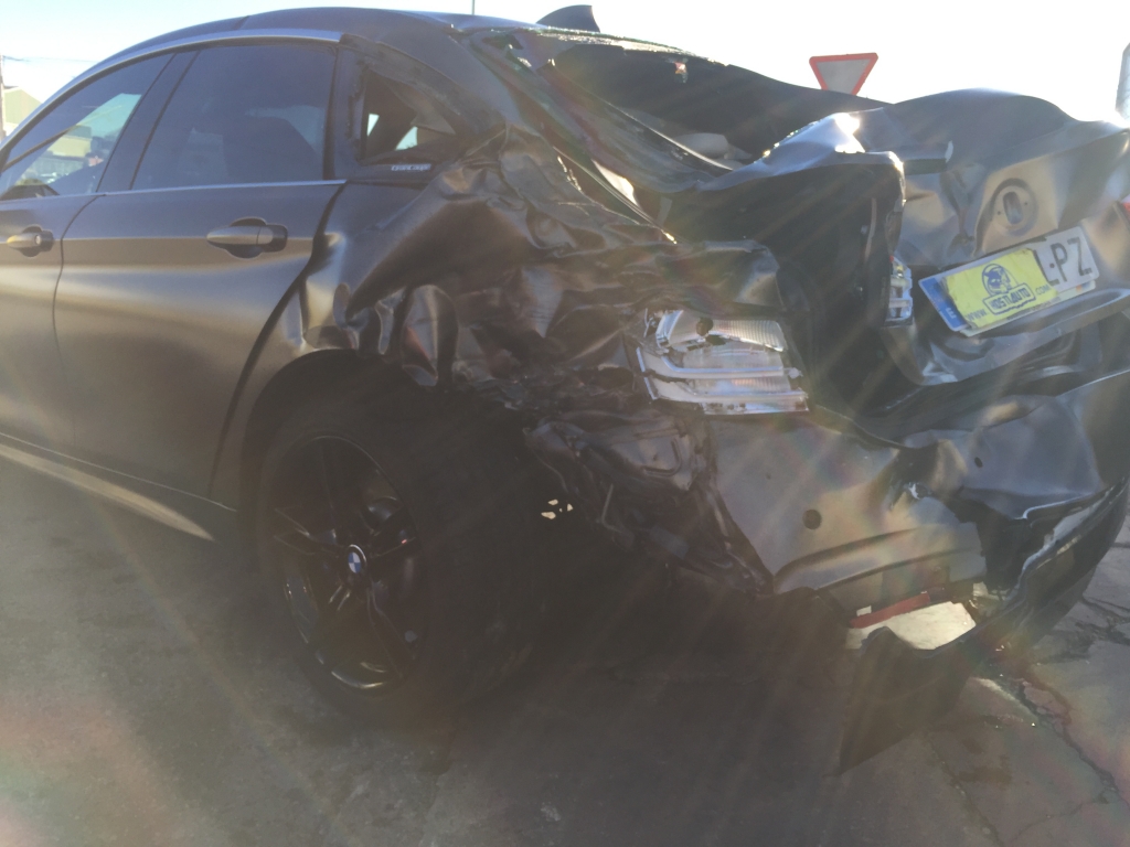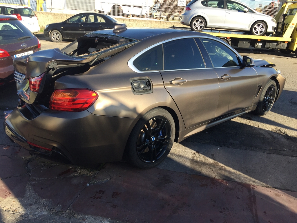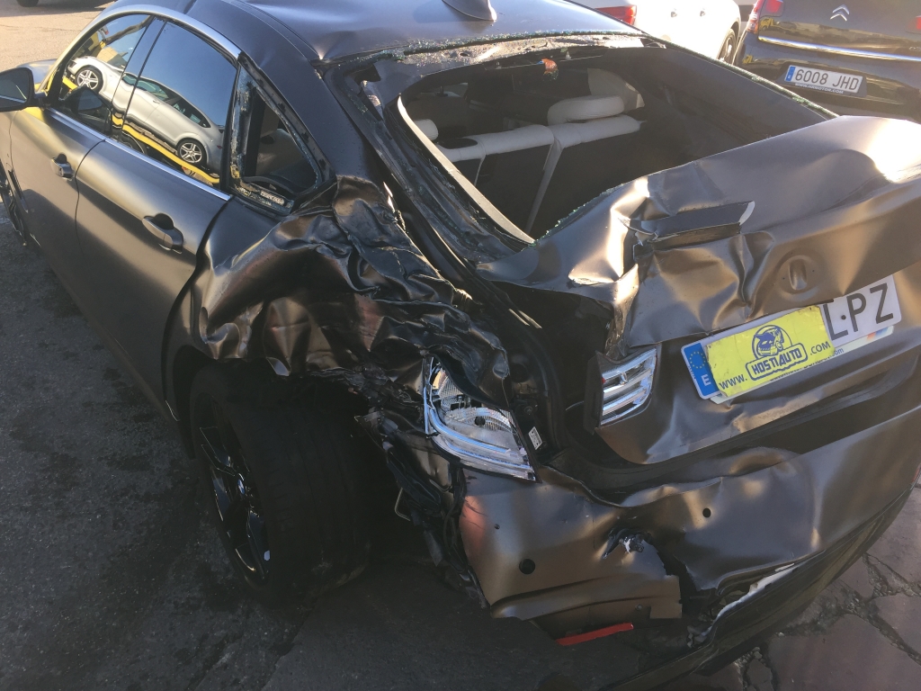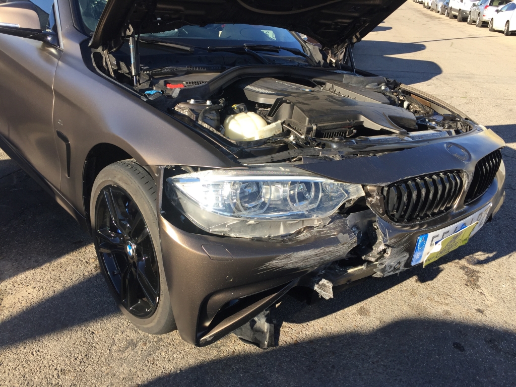 vehiculo con golpe delantero afectando a bajos y ambas mecanicas de ruedas delanteras y trasero izquierdo,arranca,asientos de cuero calefactables con memoria,techo solar,pack m,equipo multi media con navegacion,volante multi funcion,tempomat.