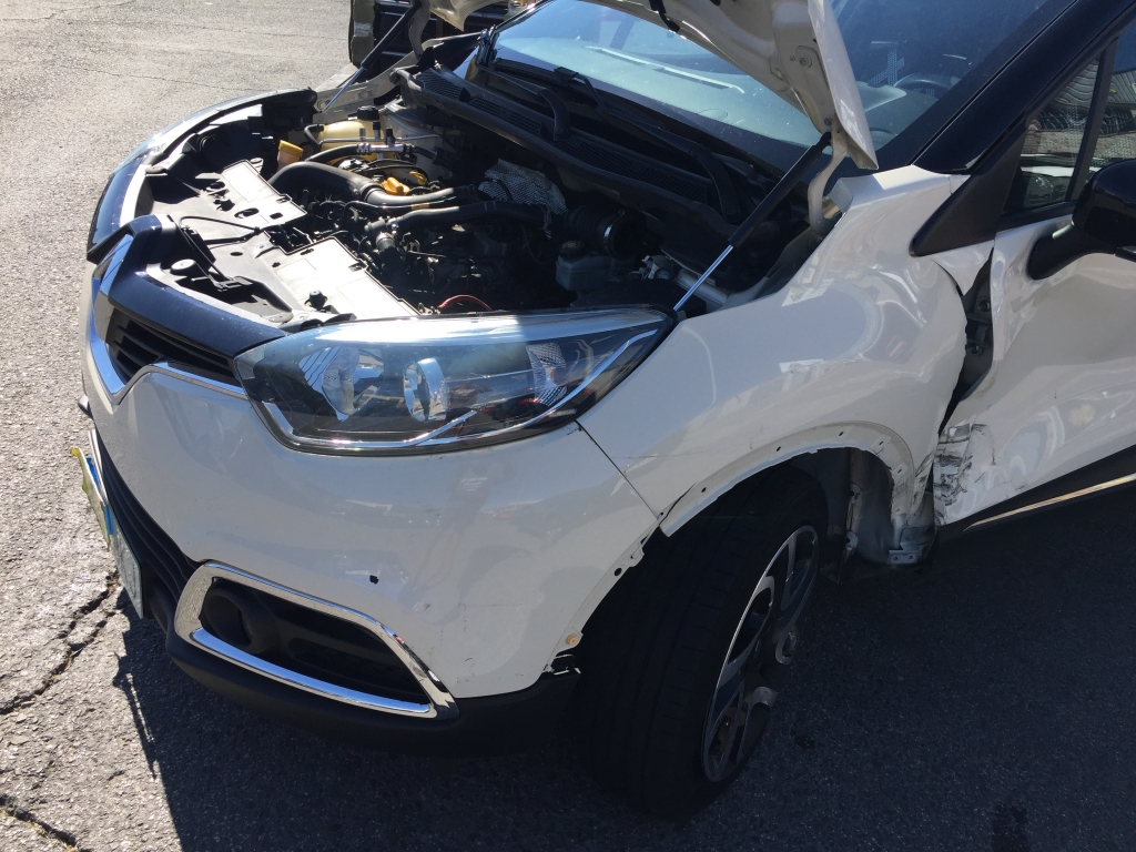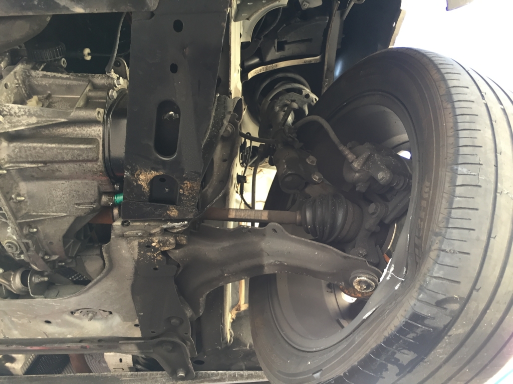 vehiculo con golpe delantero izquierdo afectando a ambas mecanicas de rueda y taco motor lado golpe,arranca,airbags ok.